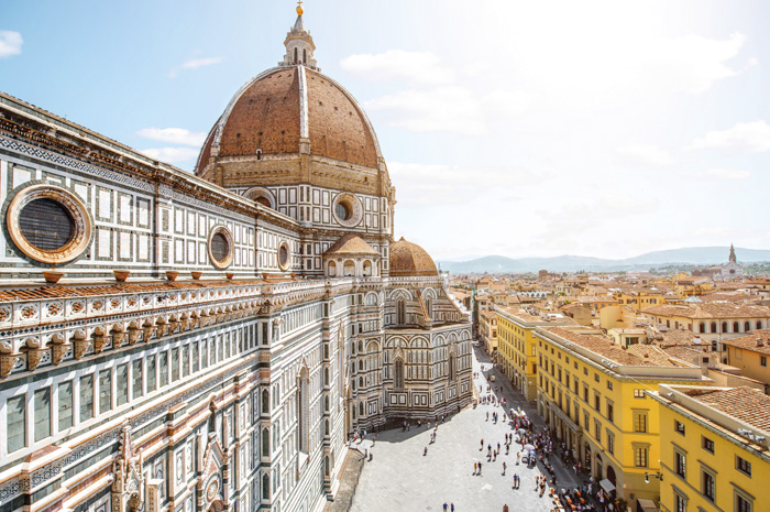 Excursion à Florence et visite guidée de la capitale de la Toscane, l’une des plus belles villes d’Italie. Au cœur de la vieille-ville, vous apprécierez la place du Dôme avec la Cathédrale Santa-Maria dei Fiori, le Baptistère, le Ponte Vecchio traversant l’Arno, la Place de la Seigneurie et l’imposant Palazzo Vecchio. Déjeuner au restaurant. L’après-midi, entrée et visite guidée du Palazzo Vecchio. Retour à l’hôtel, dîner et logement.