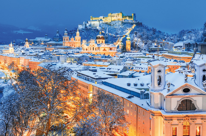 Excursion à Salzbourg, ancienne cité des Princes-Archevêques et ville natale de Mozart. Visite guidée de la vielle ville aux maisons garnies, la célèbre Getreidegasse ou rue des enseignes, la maison natale de Mozart (extérieur). Déjeuner au restaurant. Après-midi libre pour profiter du très beau marché de Noël autour de la cathédrale. Retour à l’hôtel, dîner et logement.