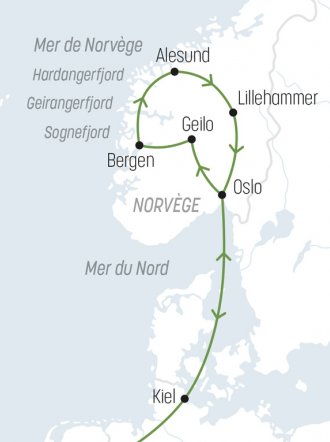 Route vers Kiel, grand port sur la Mer Baltique, ville presque totalement détruite par les bombardements de la dernière guerre. Présentation en gare maritime et embarquement à bord d’un navire de la Color Line. Déjeuner à bord. Départ du navire à destination de la Norvège. Croisière en mer le long des côtes du Danemark puis de la Suède. Dîner à bord. Logement en cabine intérieure double.